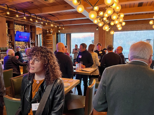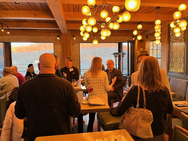 Complimentary valet parking is available. Step out of your warm car, hand your keys to the valet, and join us for warm and cozy networking overloooking the Delaware River.
